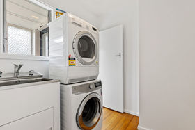 Open plan kitchen, living and dining with neutral décor and extremely tidy throughout with new carpets and paint. Two generously sized double bedrooms have easy access to the modern bathroom, which includes a shower and separate bath tub. The laundry room keeps the washing in its place and a heat pump and HRV system add to the list of advantages.
