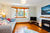 Sunny open plan lounge, dining and kitchen, with lovely polished Rimu floors with a wood burner for warmth.