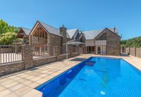 Imposing with its grand 625sqm (approx) floor area, this magnificent home set on picturesque grounds features a galley-style kitchen which comprises top-quality European appliances, walk-in pantry and marble bench tops. The informal dining offers an elongated space and has a Masport gas fire set amongst a Schist feature surround. Tucked neatly at one end of the informal dining and directly beside the kitchen is a recessed area, with plenty of room for a small dining set-up. An informal living room can be integrated with or separated from the informal dining, and opens to the tiled patio area. Interconnecting with the informal living is the large formal lounge with outdoor access, which is also directly opposite the formal dining. Charming and characteristic with its exposed wooden beam ceiling and schist feature fireplace accommodating an open gas fire, this room elegantly showcases a mix of natural materials while incorporating luxurious touches. The separate formal dining room could also be utilised as an office if required. Upstairs and overlooking the beautiful grounds beyond is the elegant master suite which comprises a private balcony, walk-in wardrobe, plus a tiled ensuite with double vanities. Also located upstairs are the home's remaining three bedrooms and two of its further three bathrooms. Completing the upstairs floor plan is the home's games room with its own in-built bar, plus there is also a study. The outdoor pool area has a heated pool and spa, and leads directly to an indoor changing room and bathroom, plus an asphalt tennis court with flood lights has a second use as a netball court. Extensive grounds include numerous raised planter beds and espalier fruit trees, with grapevines twisting around the significant pergola structures. With its irrigation consent and array of outbuildings including a large shed, stables and three-bay hay shed all located within the city boundary, this is a property like no other.