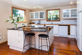 Well positioned on a beautifully landscaped 664sqm family friendly section, this extremely attractive two storey home was originally a traditional, 1950s character bungalow. Extensive renovations and the addition of a second storey in the nineties have transformed the home into an inviting modern residence with all the space and modern conveniences one could wish for. With a warm and welcoming ambience, the home boasts four generous double bedrooms, three bathrooms, spacious interconnecting living areas and a lovely social, open-plan kitchen. The master suite and a further two bedrooms, along with a full family bathroom are located on the first floor, while on the ground floor the fourth bedroom is serviced by a third bathroom. Double glazed on the ground floor and fully insulated throughout, eye-catching timber joinery and exquisite polished timber flooring complement a wonderfully relaxed floor plan and tasteful interior decor.