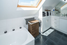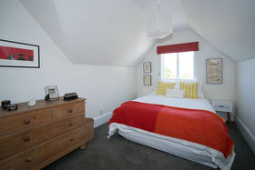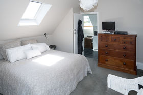 The kitchen is open plan to the family dining and flows readily to the well-proportioned living room with its warming logburner; these spaces all open to the terrace and garden.