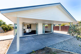 Sunny light open plan living with heat pump with sliders to private back yard and to spacious paved patios.