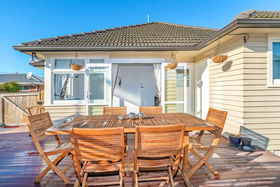 Open plan living /dining with heat pump and HRV system throughout, plus seperate living room with door to sunny large deck and garden.