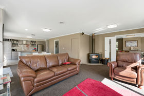 Bedrooms comprise master with large ensuite including bath and sizable walk in wardrobe, two additional bedrooms, the second of which could easily be divided to make a fourth bedroom. A large, separate laundry and internal access to the triple garage ensures the practicalities of life are well catered for. Double glazed throughout with multiple heat sources including logburner, gas fire, heatpump and underfloor heating make this an exceptionally warm and comfortable family home.