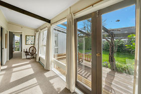 A sunroom, used as a casual living space with great access to the garden opens from the formal lounge room which is resplendent with a large mantel and log burner. The formal dining room is an elegant space with easy access to the sunny kitchen and kitchenette which also opens to the garden and patio.
