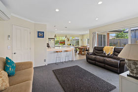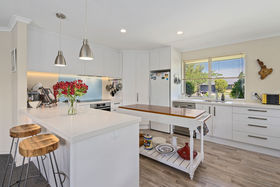 The open-plan living space is wrapped with windows for abundant natural light and views of the leafy garden. Sliders invite you to step outside and enjoy the sheltered decking and garden beyond - the seamless indoor/outdoor flow is ideal for relaxing and entertaining. At the heart of the space, a sleek and practical kitchen offers plenty of bench space and storage, and is fitted with an induction cook-top plus two gas hobs. Double doors open to a separate lounge, which also opens to the deck. Four bedrooms (master with WIR and en suite) plus a separate office make for easy family living, while good storage - including attic access above the double internal-access garage - ensure the utmost practicality.