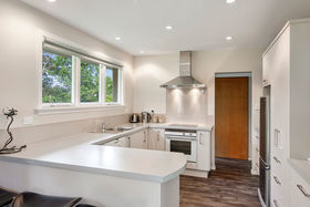 Updated kitchen with modern features and appliances. Open plan dining and generous separate lounge, both opening to a larger covered terrace flowing to the lawn.