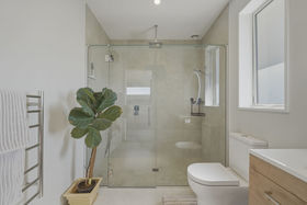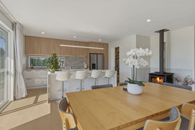 What's inside: Step into a warm, contemporary interior that feels instantly inviting. The open-plan kitchen is a real highlight with stone benchtops, a walk-in pantry, Bosch appliances and room for the double plumbed fridge. The living zone delivers year-round comfort thanks to a wood burner, heat pump and heat transfer system, while a separate tiled laundry and generous storage keep life running smoothly. Accommodation is thoughtful and flexible - a sun-soaked master suite with outdoor access, walk-in robe and sleek tiled ensuite, a queen bedroom with its own walk-in and an additional double with built-in storage. Both bathrooms bring the luxe factor with quality tiling and modern fittings.